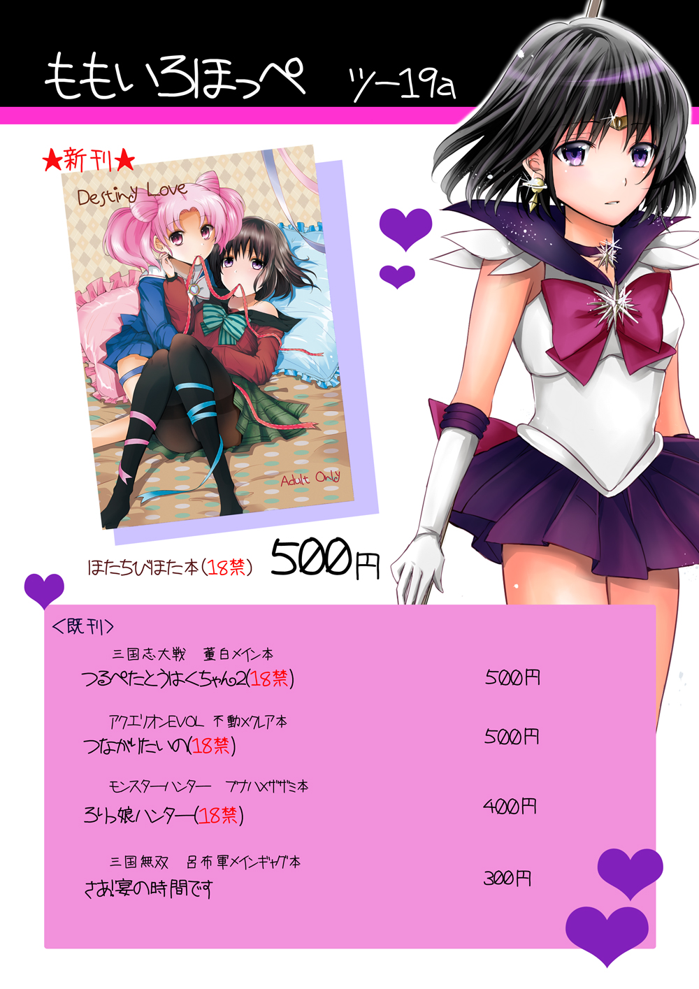 虎の穴さんと、メロンブックスさんにて委託が決まりました。 http://www.toranoana.jp/mailorder/article/04/0030/09/25/040030092500.html(虎の穴さん) http://shop.melonbooks.co.jp/shop/detail/212001057597(メロンブックスさん) ※リンク先は成人向けです いちゃらぶ百合ですよおお。 セーラームーンは陵辱本が多いですけど はるみちとかほたちびとか百合もいいと思うのです。 コミケいけない方は是非通販のほうご利用ください。 よろしくお願いします!! では引き続き原稿に戻ります。 |